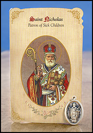 St Nicholas (Sick Children) Healing Holy Card with Medal