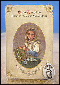 Dymphna (Mental Illness) Healing Holy Card with Medal