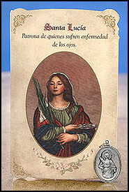 Santa Lucía (Eye/Vision Ailments) Spanish Holy Card with Medal