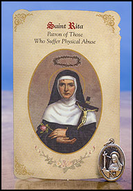 St Rita (Physical Abuse) Healing Holy Card with Medal