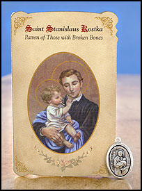 Stanislaus Kostka (Broken Bones) Healing Holy Card with Medal