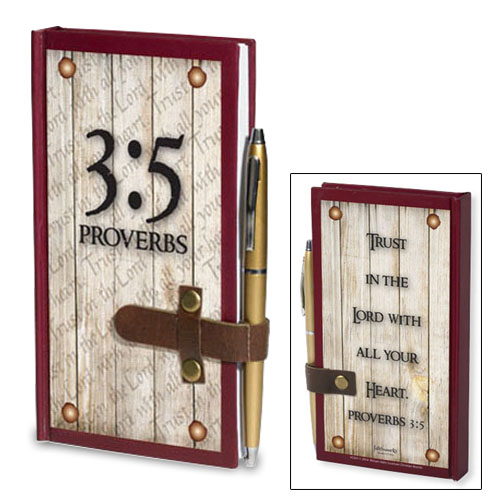 Back Reads: Trust in the Lord with all your Heart. Proverbs 3:5 -- Paper/Leather/Pen,