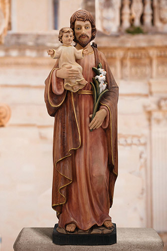 A beautifully rendered line of European style church-sized statues. Made from an Italian artist's drawing, and hand crafted and hand painted from start to finish, each piece honors the beauty and character of the fabulous wood statues of old. The statues are lovingly treated and painted so that every piece retains its natural hand carved look. These exclusive statues will make an excellent addition to any church or chapel setting.