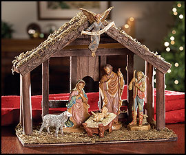 Six-Piece Nativity Set with Wood Stable Item Number: