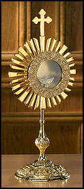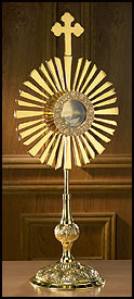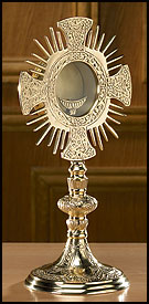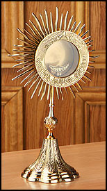 Our monstrances feature a hinged back door with a gold-plated removable luna