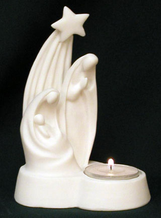 Nativity Votive Candle in white alabaster and comes with a repleaceable tea