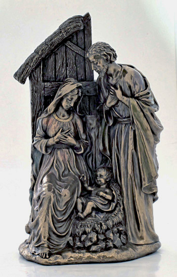 SR-75394 Holy Family in Stable, Cold-Cast Bronze,