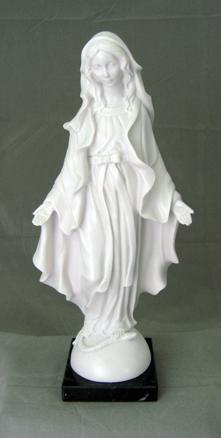 A beautiful Lady of Grace statue in white alabaster on a marble base, 11"