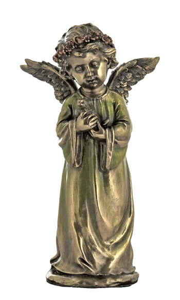 Angel Holding Dove, Cold-Cast Bronze, 7.75" Statue