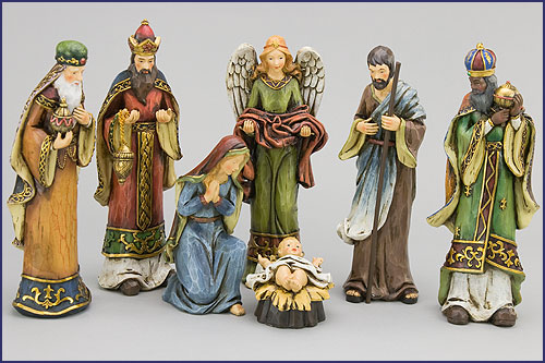 36" 11pc HAND PAINTED RESIN NATIVITY WITH WOOD TONE FINISH