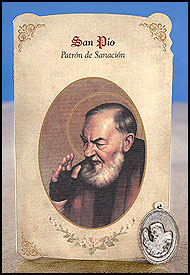 San Pio (General Healing) Spanish Holy Card with Medal