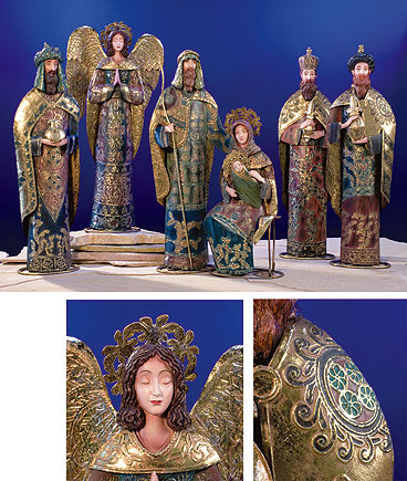 painted and finally gilded to create a one-of-a-kind keepsake Nativity that