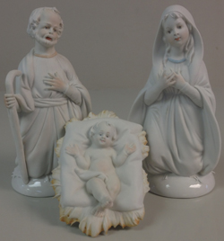 GP-581-HF Porcelain Holy Family, Lightly painted features, 3pc's, 5.5"