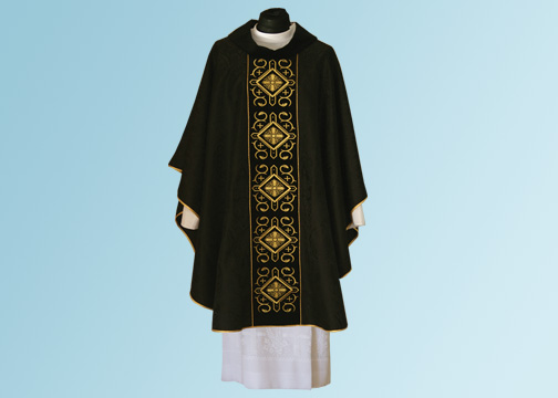 Chasuble - Rich jacquard fabric with cowl collar and velvet front and back embroidered