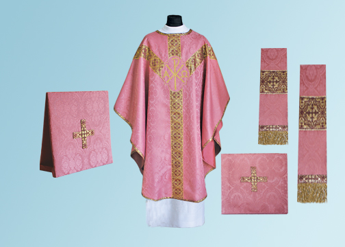 Lined. Includes stole, maniple, burse and chalice veil. 50"BL.