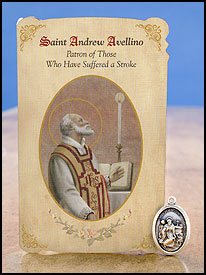 St Andrew Avellino (Stroke) Healing Holy Card with Medal