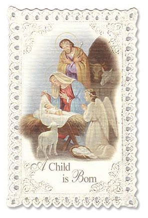 with a punch lace border. The back of each card contains an appropriate sacramental