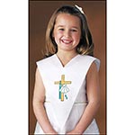 This children's silk screened felt stole is worn during the baptism ceremony.