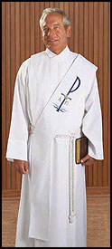 Embroidered with baptism symbols, this lined deacon stole is worn during the