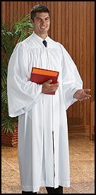 Graceful look of a pastor's gown with shirred gathering at the yoke. Made