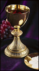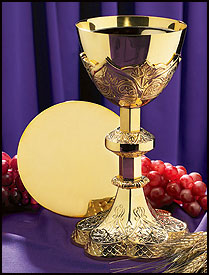 Our Grapes and Wheat Engraved Chalice with Paten was exclusively designed