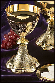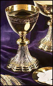 high quality standards. An intricate grapes and wheat pattern adorns the chalice