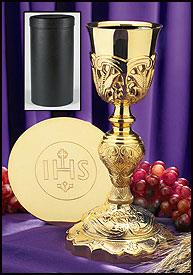 Our Coronation Chalice with IHS Paten and Case was exclusively designed for