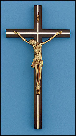 Description: Wood Cross, Brass Finish Corpus. Boxed. -- Wood/Brass Finish Corpus -- 10" H