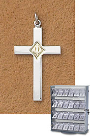 Gift Boxed. Comes with a Rhodium finish metal chain. Purchase any 48 pieces and receive GC949 Jewelry Display Free! Display measures 15" W x 25" H x 7" D. -- Silver/18kt Gold Plated Silver -- 1 1/4" H x 3/4" W