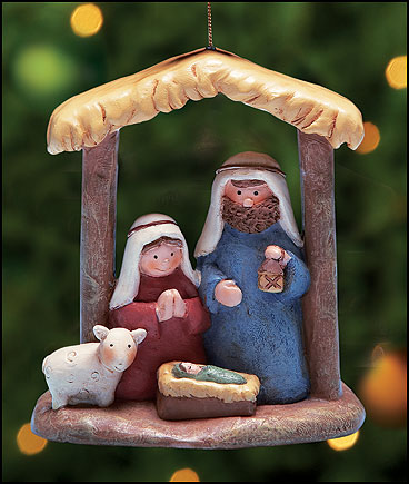 Please note that this item is advertised in the catalog with a star on the top of the stable. It is actually an ornament that has no star but rather a string to hang it on the tree. -- Resin -- 3 1⁄2" H