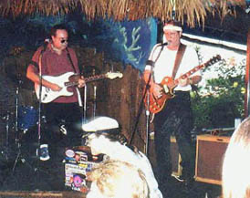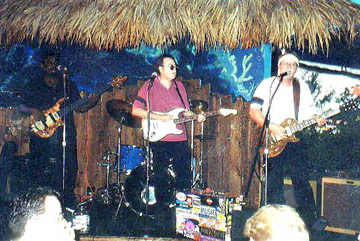 Sweating Citykings playing at the Seagull in Clear Lake for the Low-Note Johnson Benefit Sunday, wearing black armbands in honor of Ray Curry. It was Randolph's birthday and I made him sing one. The benefit raised $271 for Ray's son, Lane's scholarship fund that day, all dollar bills stuffed into a bottle. They also raised around $3,000 for Low-Note.