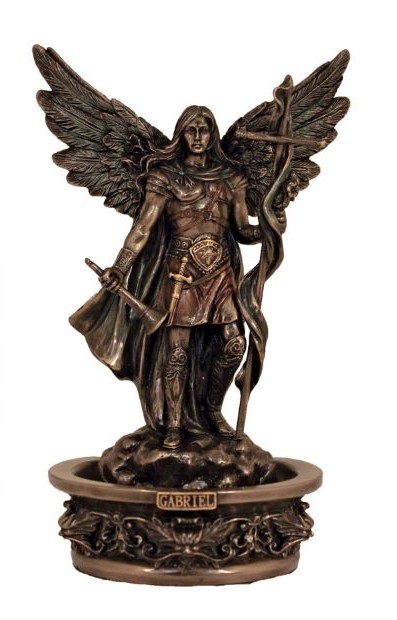 Gabriel font, lightly hand-painted cold cast bronze, stands or hangs, 7".