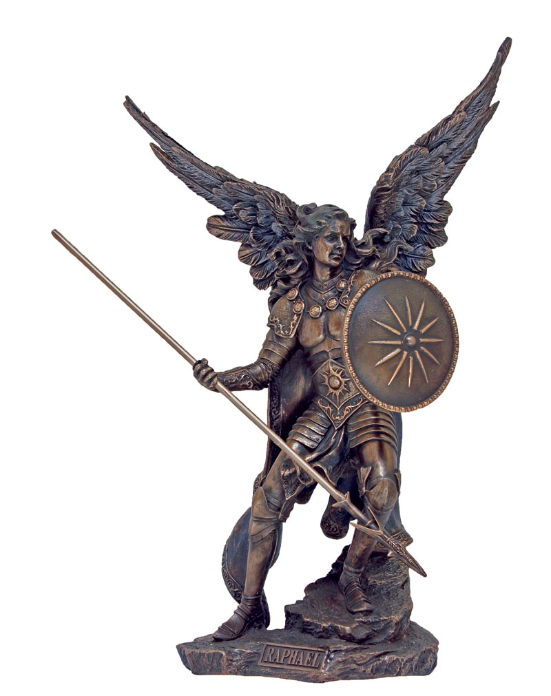Archangel Raphael from the Veronese Collection. Lightly hand-painted cold cast bronze, 9inches. Also available in 13.5inches, SR-74697 and 4inches, SR-75580.