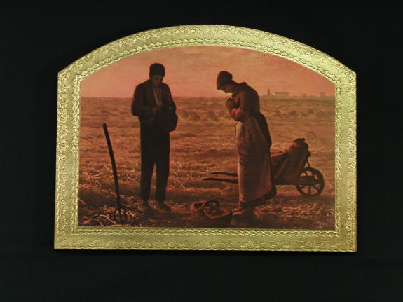 The Angelus by Millet Florentine Plaque in a half moon shape, 16.75 x 12.75".