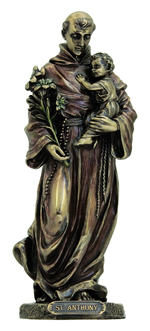 St. Anthony & Child, lightly hand-painted cold cast bronze, 8" STOCK