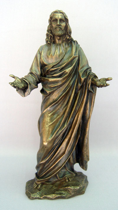 Welcoming Christ statue, hand-painted , bronzed resin, 12"