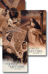 These videos were produced by Fr. Patrick Peyton, the famous “Family Rosary Crusade” priest. They are full-scale dramas of each of the 15 mysteries of the Rosary. Each video in the 3-set series contains five 20-minute segments for each Joyful, Sorrowful or Glorious mysteries of the Rosary. They are beautiful and reverent dramas that bring to life the story and meaning of each of the mysteries of the Rosary. These lavish productions were filmed in Spain in 1957 with a cast of thousands. Perfect for home or school.