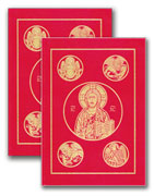 of the Lectionary are 7-5/8 x 10- 7/8 in size. Both are smyth sewn and are hardbound.
