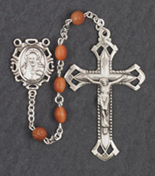 5x7mm OVAL BROWN COCO STERLING SILVER CENTER & CRUCIFIX ROSARY