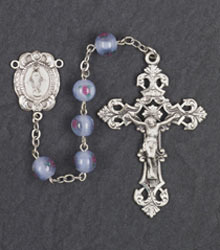7mm ROUND SAPPHIRE PEWTER WITH STONES CENTER & CRUCIFIX ROSARY