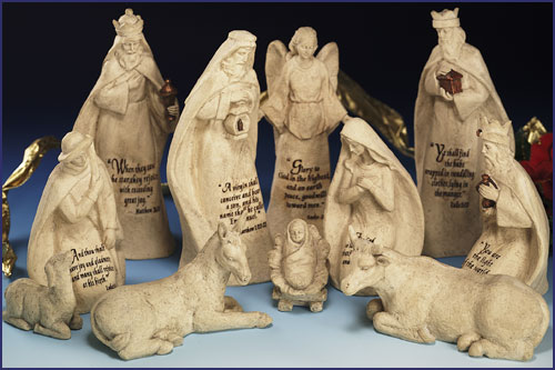 8" 11pc STONE FINISH NATIVITY SET WITH WORDING