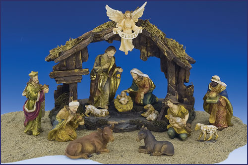 8" 11pc RESIN NATIVITY SET WITH STABLE #47403
