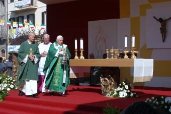 The Holy Father Benedict XVI celebrated Mass on custom made bronze Altar