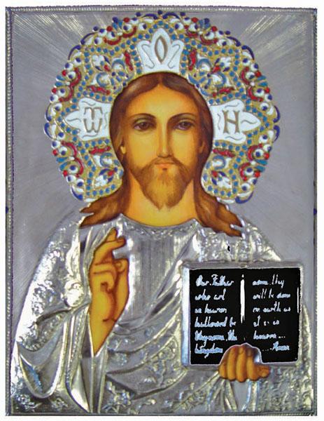 Christ the Teacher. Nickel plated over copper. Hand painted face and hands. 12" x 9"